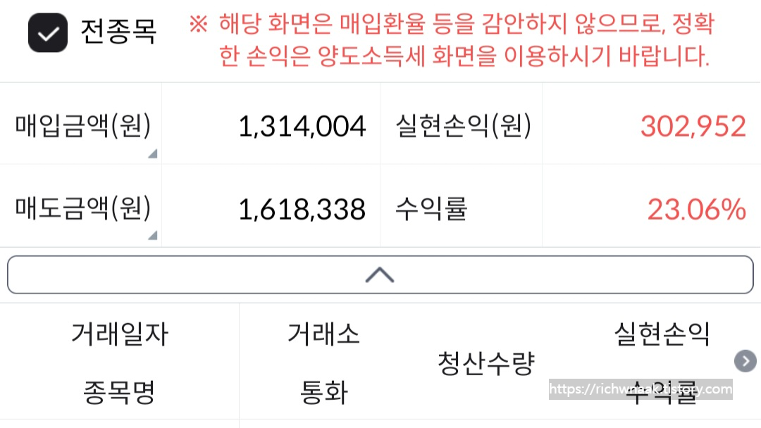 유진증권 해외주식 계좌수익은 302,952원입니다. 올해 양도소득세는 좀 낼 것 같습니다. 자녀 미국주식 계좌에 힘을 실어야겠습니다.
